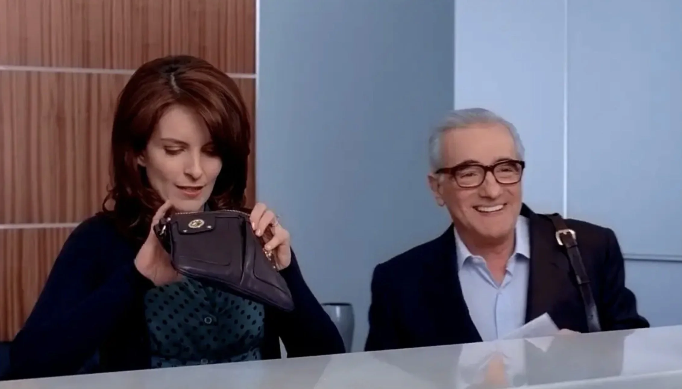 Tina Fey uses her Amex card to gain access to the first class airport lounge to try persuade Martin Scorsese to fulfill her lifelong dream of being "kicked to death in a movie."